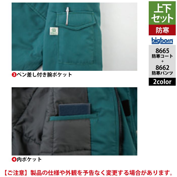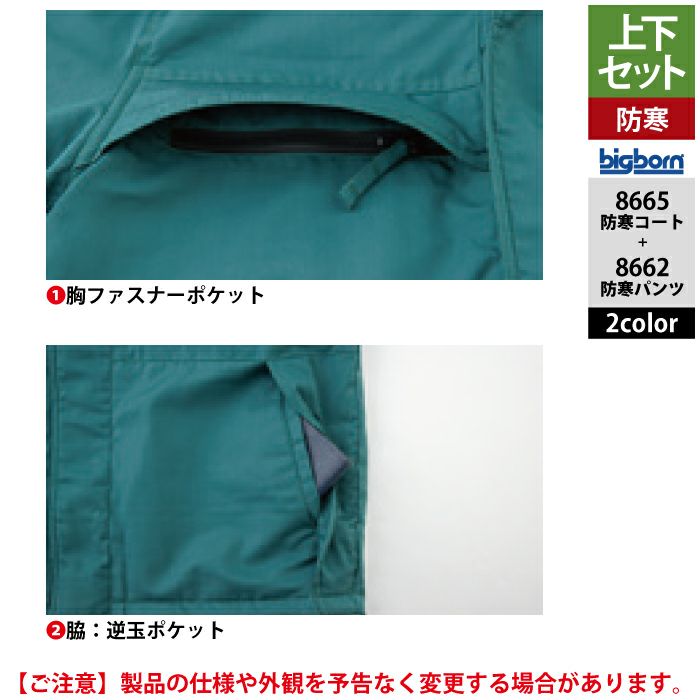 作業服 作業着 ビッグボーン bigborn 作業服 上下セット 8665 防寒コートM-3L と 8662 防寒パンツ M-3L 作業着 作業ズボン