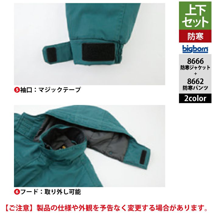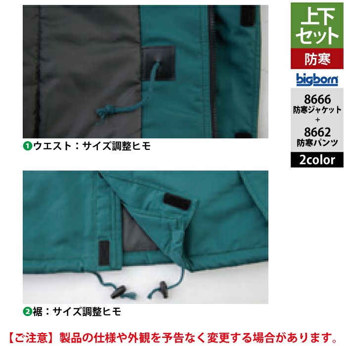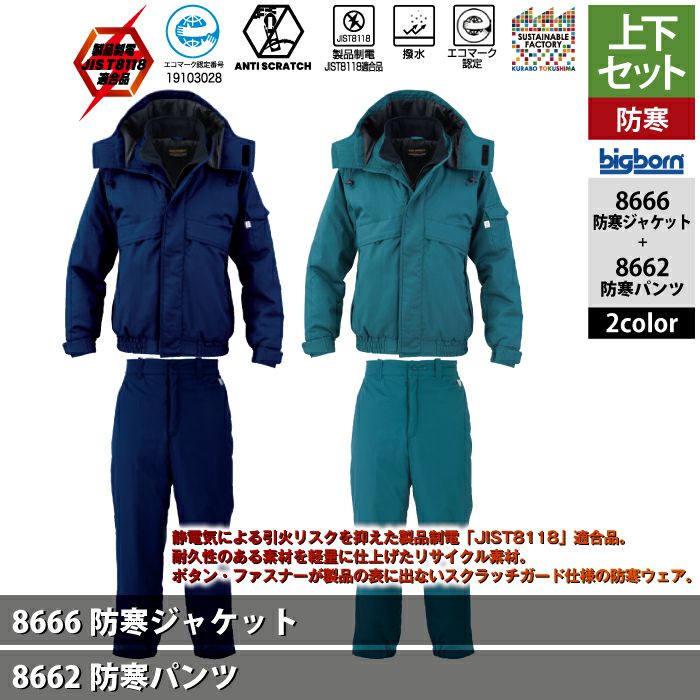 作業服 作業着 ビッグボーン bigborn 作業服 上下セット 8666 防寒ジャケットM-3L と 8662 防寒パンツ M-3L 作業着 作業ズボン