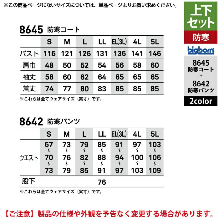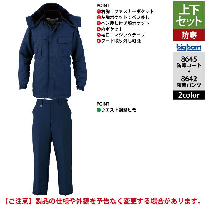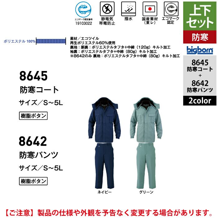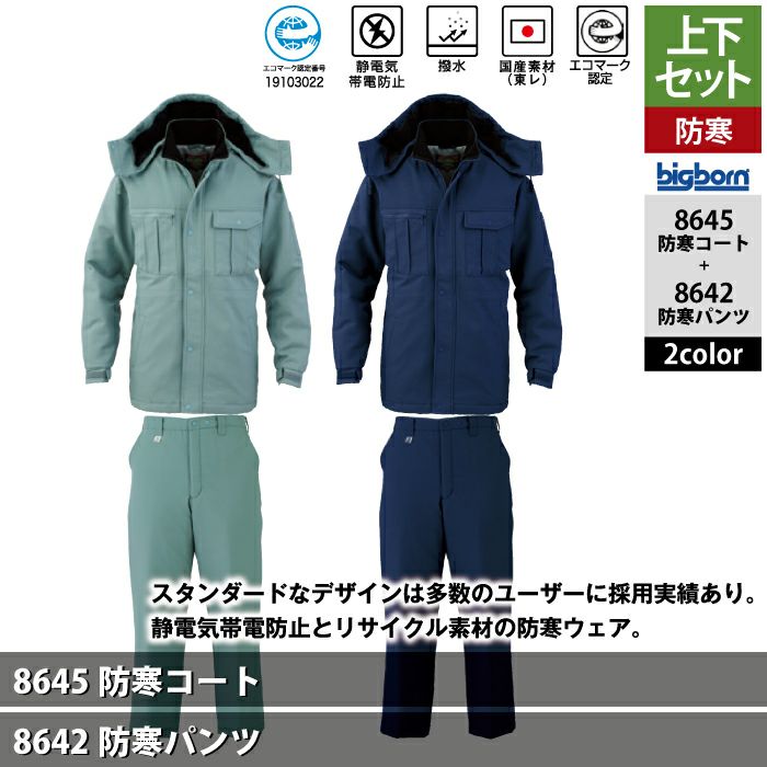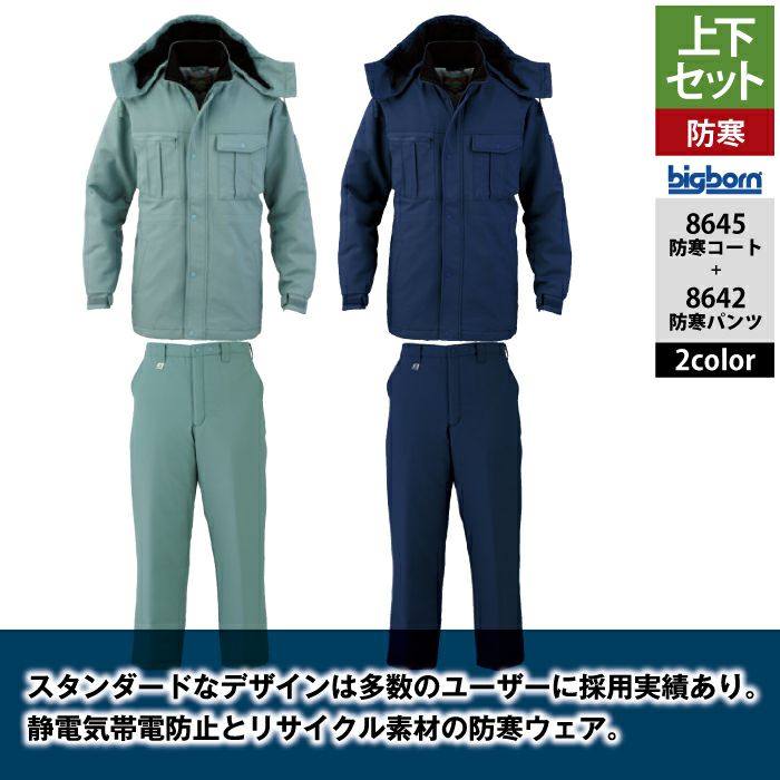 作業服 作業着 ビッグボーン bigborn 作業服 上下セット 8645 防寒コートS-3L と 8642 防寒パンツ S-3L 作業着 作業ズボン