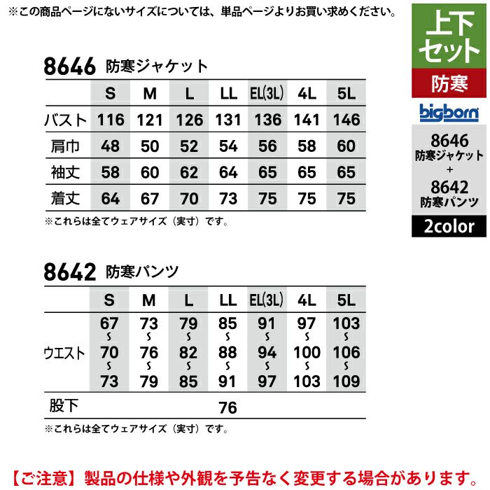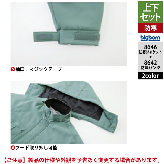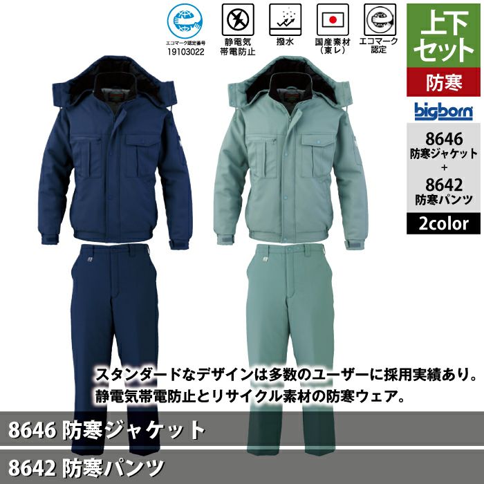 作業服 作業着 ビッグボーン bigborn 作業服 上下セット 8646 防寒ジャケットS-3L と 8642 防寒パンツ S-3L 作業着 作業ズボン