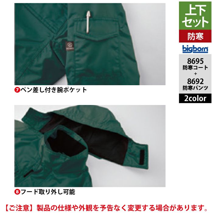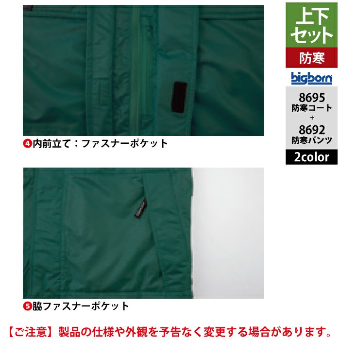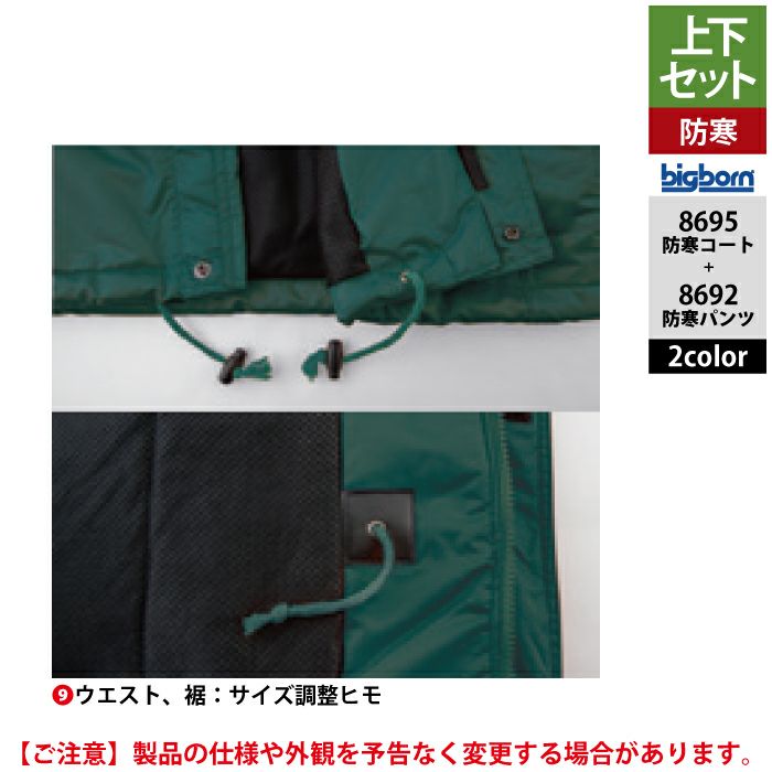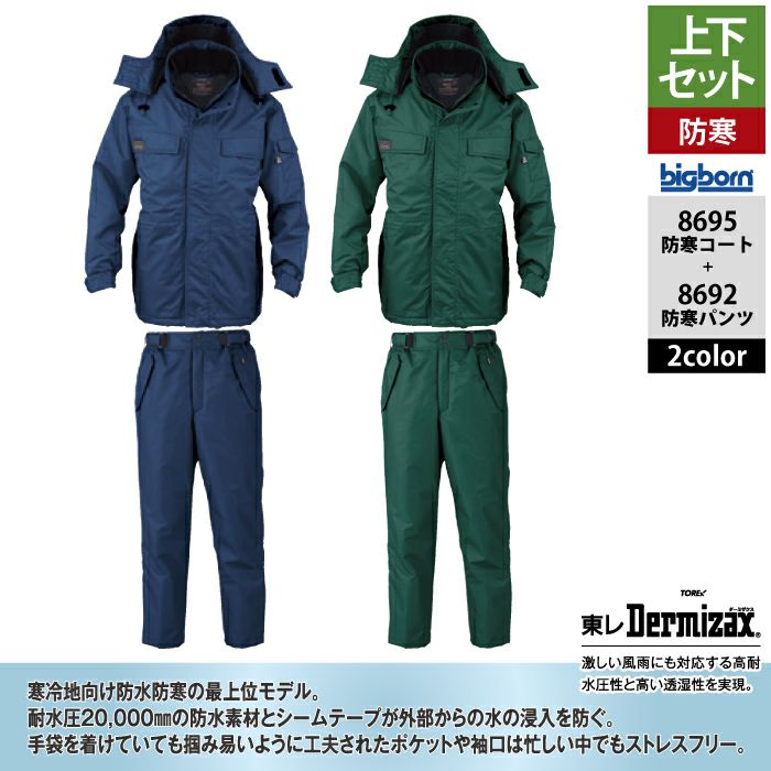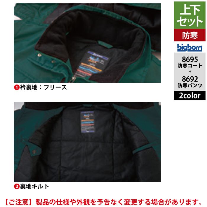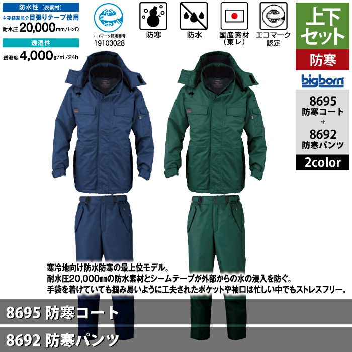 作業服 作業着 ビッグボーン bigborn 作業服 上下セット 8695 防寒コートM-3L と 8692 防寒パンツ M-3L 作業着 作業ズボン