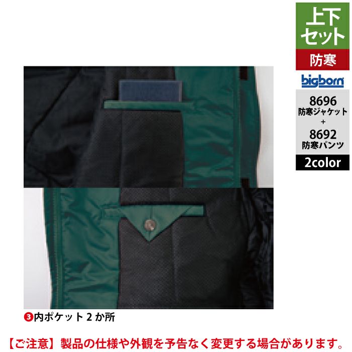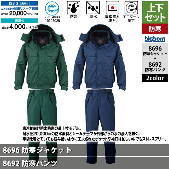 作業服 作業着 ビッグボーン bigborn 作業服 上下セット 8696 防寒ジャケットM-3L と 8692 防寒パンツ M-3L 作業着 作業ズボン