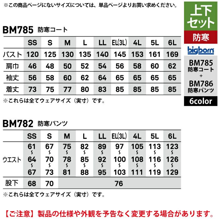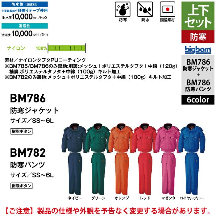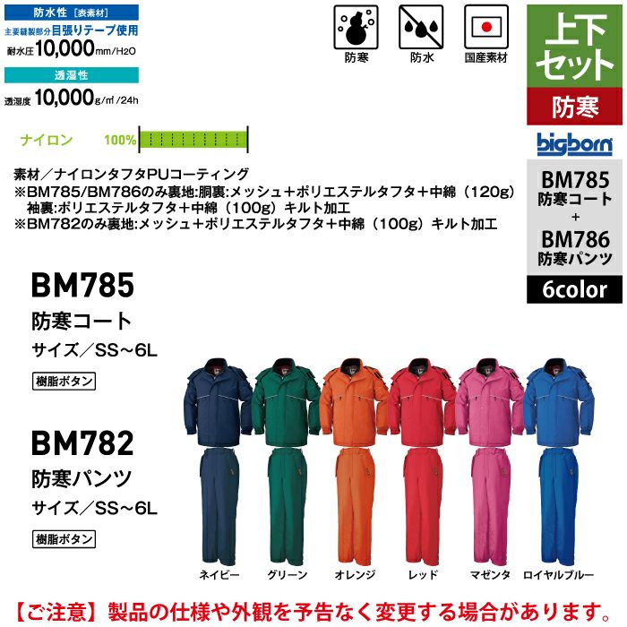 作業服 作業着 ビッグボーン bigborn 作業服 上下セット BM785 防寒コートL-3L と BM782 防寒パンツ SS-3L 作業着 作業ズボン