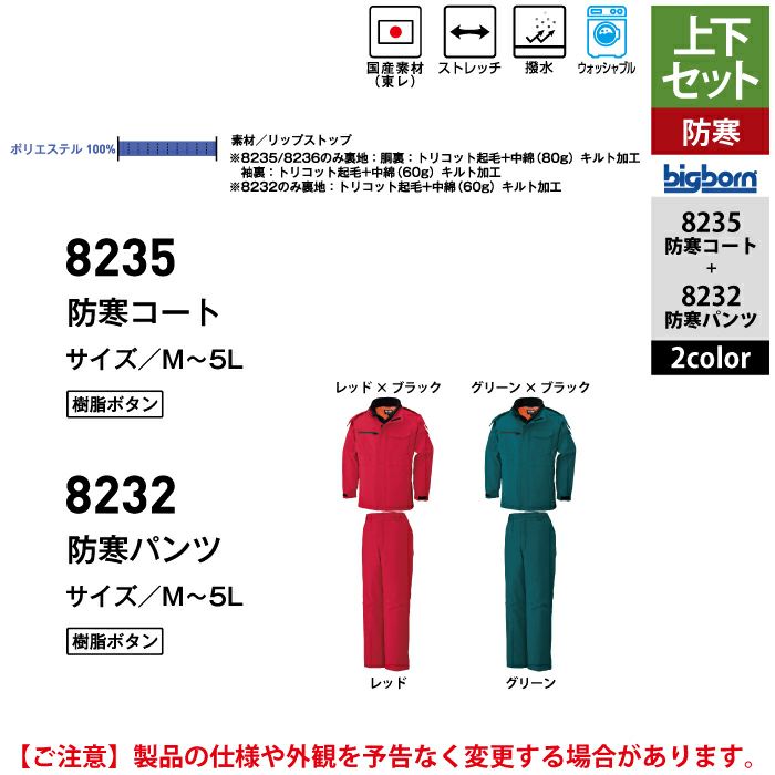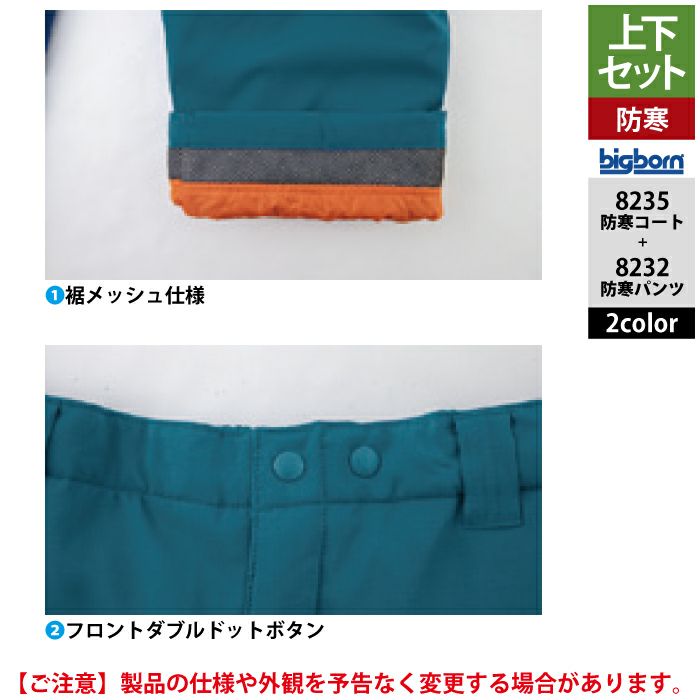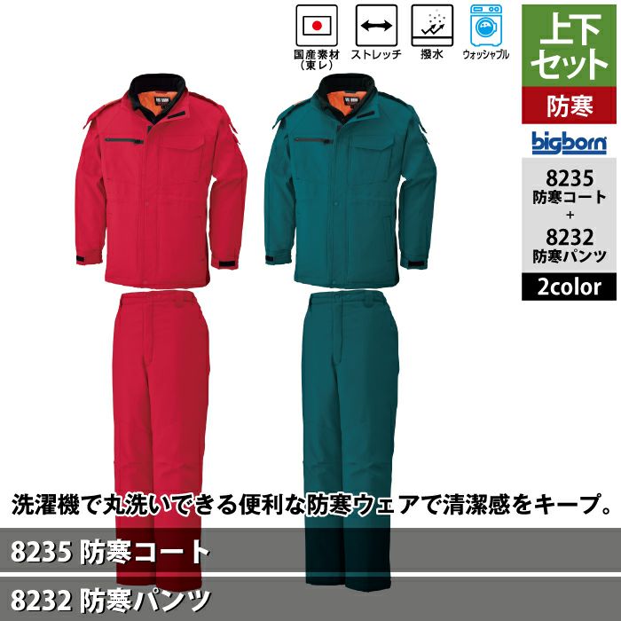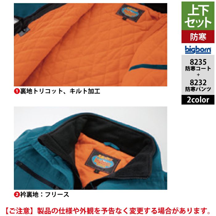 作業服 作業着 ビッグボーン bigborn 作業服 上下セット 8235 防寒コートM-3L と 8232 防寒パンツ M-3L 作業着 作業ズボン