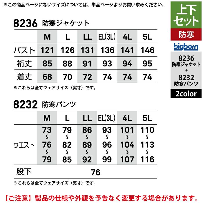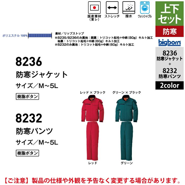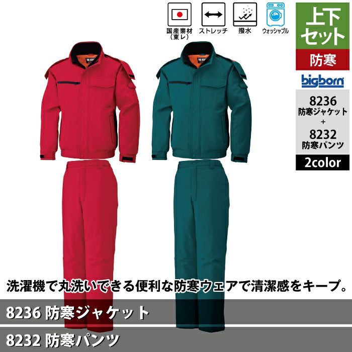 作業服 作業着 ビッグボーン bigborn 作業服 上下セット 8236 防寒ジャケットM-3L と 8232 防寒パンツ M-3L 作業着 作業ズボン