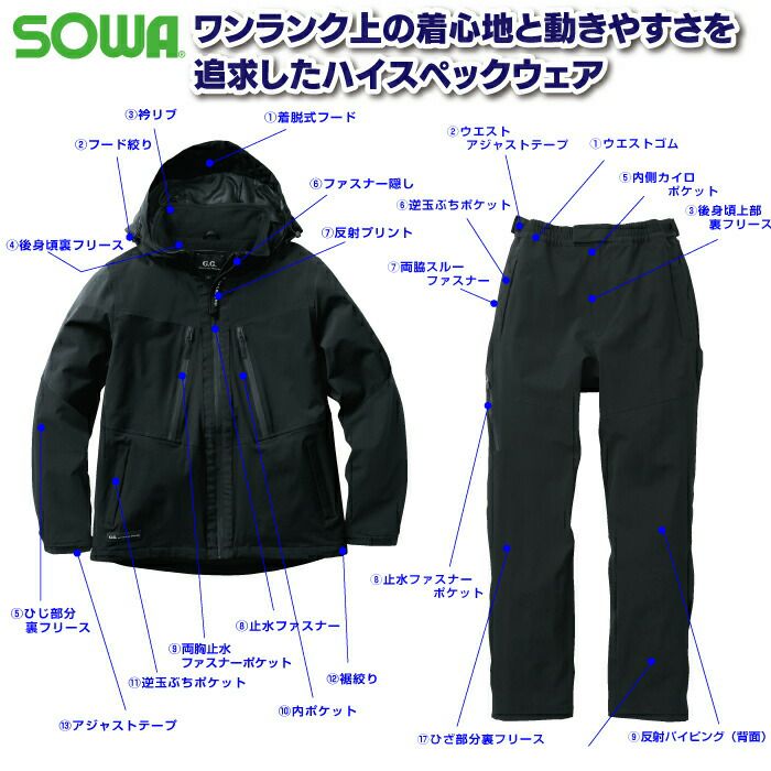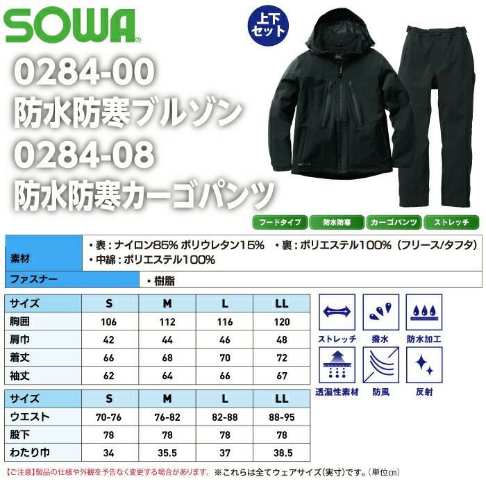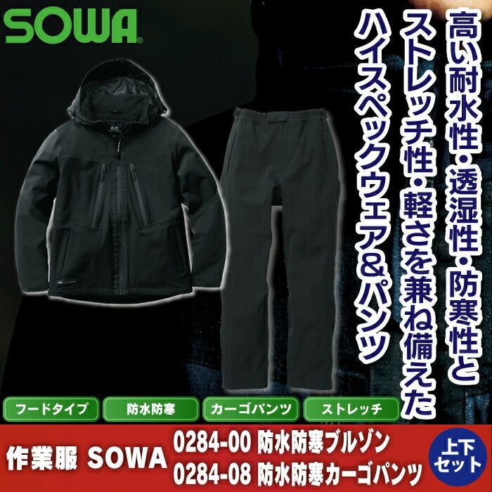 作業服 作業着 SOWA 防寒着 秋冬用 作業服 上下セット SOWA 0284-00 防水防寒ブルゾンS-LL と 0284-08 防水防寒カーゴパンツ S-LL 秋冬用 かっこいい おしゃれ 作業着 ズボン