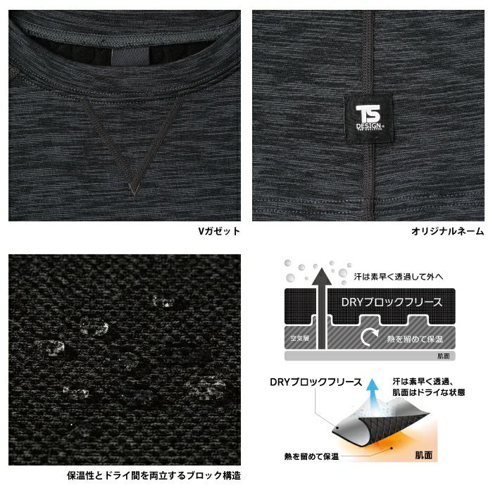 藤和 TSDESIGN 作業服 8245 TSDRYWARMロングスリーブシャツ S-LL 防寒着 秋冬用
