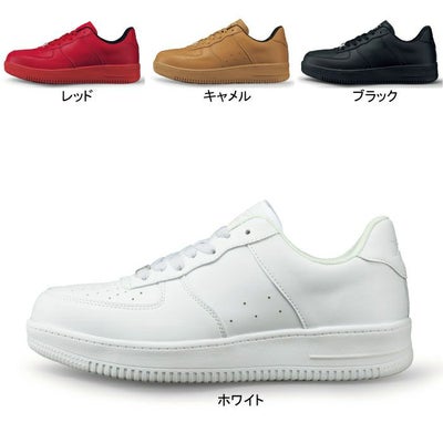 ●オールシーズン●規格:JSAA規格 B種認定品●製法:セメント製法●先芯:鋼製先芯●甲被:合成皮革●靴底:EVA+ラバー●ウィズ:EEEE●重量(g/両足):770g(26cm)●カラー:ホワイト、レッド、キャメル、ブラック