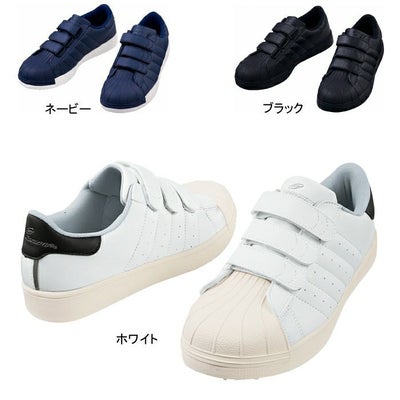 ●オールシーズン●素材:アッパー:合成皮革、ミッドソール:EVA、アウトソール:合成ゴム(耐油ラバー)、先芯:スチール芯●機能:JSAA A種認定品、衝撃吸収、耐滑仕様●重量:約340g標準/26cm(片足)●ウィズ:3E●カラー:ネービー、ホワイト、ブラック