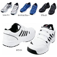 ●オールシーズン用●アッパー/合成皮革 ポリエステル、ミッドソール/EVA、アウトソール/合成ゴム(耐油ラバー)、先芯/スチール芯●耐滑仕様、衝撃吸収、重量約360g標準/26.0cm(片足)、ウィズ3E、ベロ部分ブランドネーム、つま先部分反射材使用、サイド部分反射材使用、クッション性の高いEVAミッドソール、水や油に強い耐滑ソール、踵部分反射パイピング●カラー:シルバー、ホワイト、ブラック、ロイヤルブルー
