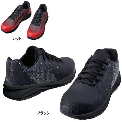 ●オールシーズン用●素材:アッパー/合成皮革 ポリエステル、ミッドソール/EVA、アウトソール/合成ゴム(耐油ラバー)、先芯/スチール芯 ●耐滑仕様、衝撃吸収、重量約390g標準/26.0cm(片足)、ウィズ3E、クッション性の高いEVAミッドソール、水や油に強い耐滑ソール●カラー:レッド、ブラック