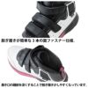 ◇3本の面ファスナーと踵のカッティングで脱ぎ履き簡単。