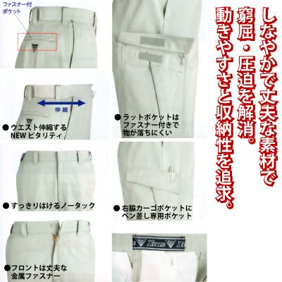ジーベック XEBEC 作業服 作業着 作業ズボン ジーベック XEBEC 作業服 1602 ノータックピタリティスラックス 70-100 秋冬用 作業着