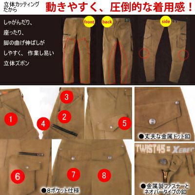 ジーベック XEBEC 作業服 作業着 作業ズボン ジーベック XEBEC 作業服 2143 ラットズボン M-3L 秋冬用 作業着