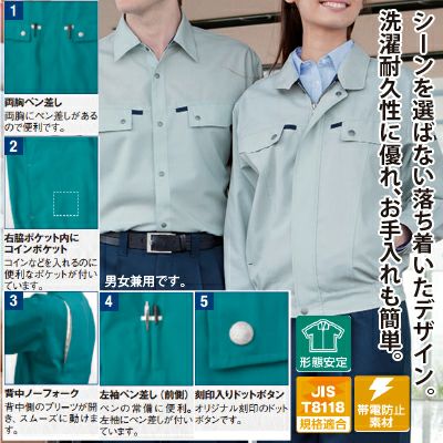 ジーベック XEBEC 作業服 作業着 作業ズボン ジーベック XEBEC 作業服 1553 長袖シャツ SS-6L 春夏用 作業着