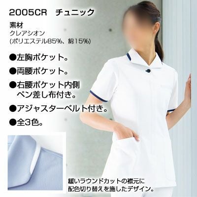 白衣 スクラブ おしゃれ 医療 ナース ソワンクレエ 2005CR チュニック S-4L 医療白衣・介護服