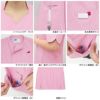 ハートシェイプドネックの衿元が上品なレディーススクラブ。優しい印象の衿元は屈んでも胸元が見えにくい安心設計。首にストラップが直接当たらないデザインです。着脱簡単で、メイクによる汚れや髪型が崩れる心配がありません。袖口、胸ポケット口は花びらモチーフの上品なカッティング。両脇に動き易いスリット入り。名札などのクリップ専用のポケット付。胸ポケットの収納を妨げません。内ポケット付きで小物収納の便利性がアップ。