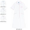 ●オールシーズン用●素材/TFストレッチラチネ ポリエステル100%●釦穴かがり配色、名札専用ポケット、ポケット二重構造(右)&キーループ、後ろリボンモチーフ、ウエスト切り替え、ポケット二重構造(左)●サイズ:S、M、L、LL、3L、4L●カラー:ホワイトブルー、ホワイトピンク、ホワイトネービー、ホワイトワイン