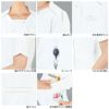 ●オールシーズン用●素材/TFストレッチラチネ ポリエステル100%●制菌加工、帯電防止素材、ストレッチ、透け防止効果、吸汗・速乾、防汚効果、小物用二重ポケット、衿部デザイン、左右脇ポケット二重構造&キーループ、袖口デザインカット仕様、名札専用ポケット、袖山タック、ウエスト切り替え、後ろベルト●サイズ:S、M、L、LL、3L、4L●カラー:ホワイト、サックス、ライトピンク