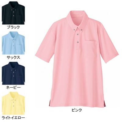 ●オールシーズン用●素材/鹿の子 ポリエステル100%●抗菌、消臭、ボタンダウン仕様、前立て&両脇スリットテープ付、三層釦、DEOテープ●サイズ:SS、S、M、L、LL、3L、4L、5L●カラー:ブラック、サックス、ネービー、ライトイエロー、ピンク