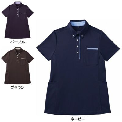 白衣 スクラブ おしゃれ 半袖 医療 ナース ホワイセル WH90938 半袖BDロングポロシャツ S-4L 医療白衣・介護ウェア