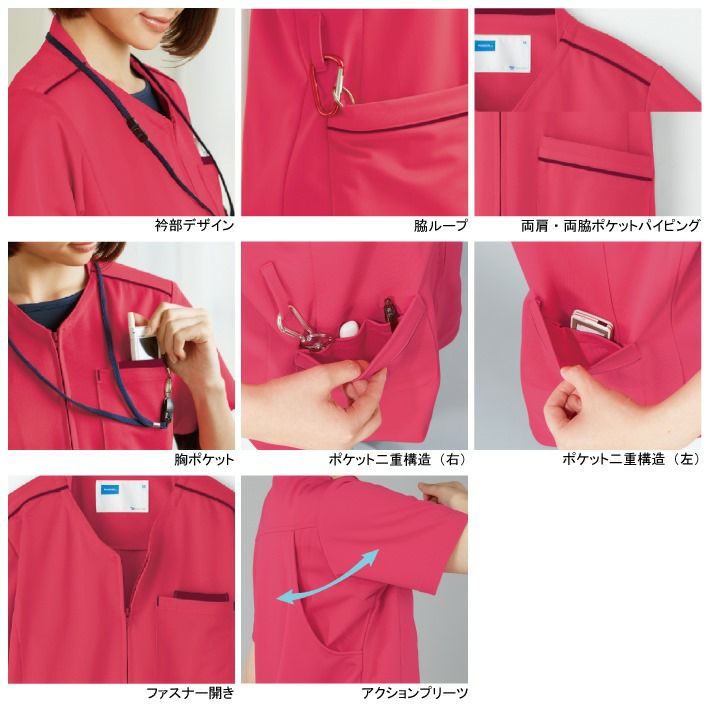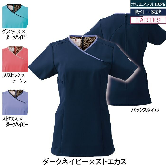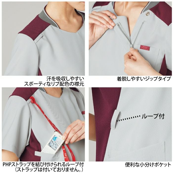 白衣 スクラブ おしゃれ 医療 ナース ソワンクレエ 7043SC レディスジップスクラブ S-4L 医療白衣・介護ウェア