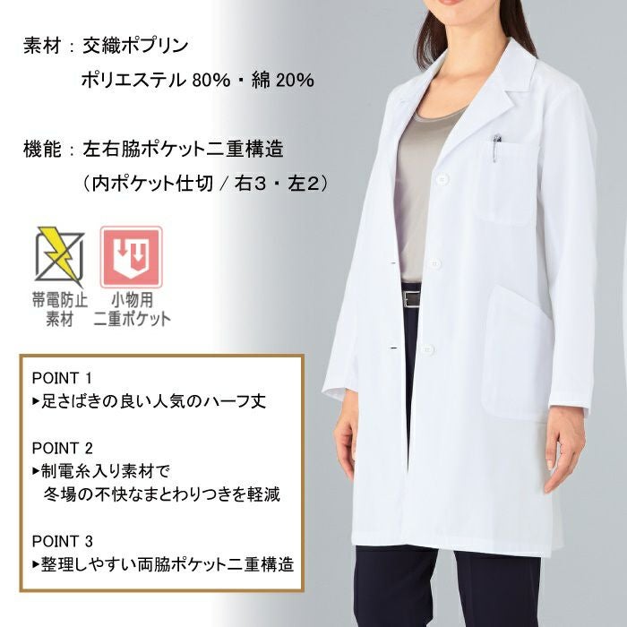 ホワイセル スクラブ 白衣 医療 介護 自重堂 ホワイセル スクラブ 白衣 医療 介護 自重堂 WH11503 レディースハーフコート S-4L 医療白衣 介護ウェア 作業着