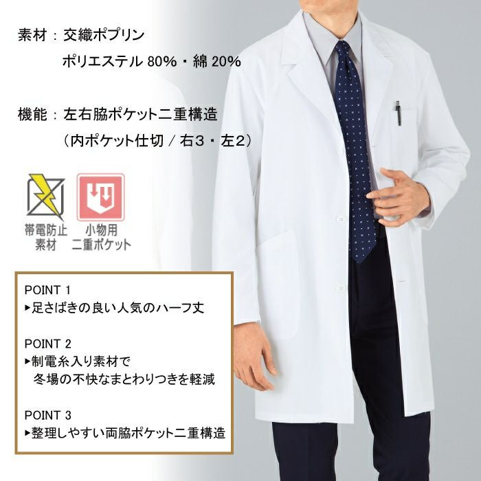 白衣 スクラブ おしゃれ メンズメディカルコート 医療 ナース ホワイセル WH11507 メンズシングルハーフコート S-4L 医療白衣・介護ウェア