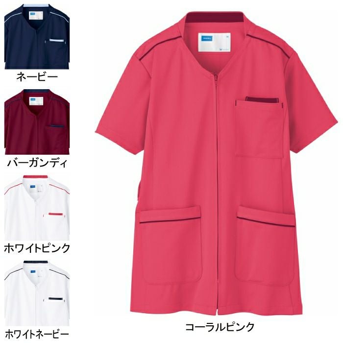 白衣 スクラブ おしゃれ メンズ 医療 ナース ソワンクレエ 7044SC メンズジップスクラブ S-4L 医療白衣・介護ウェア