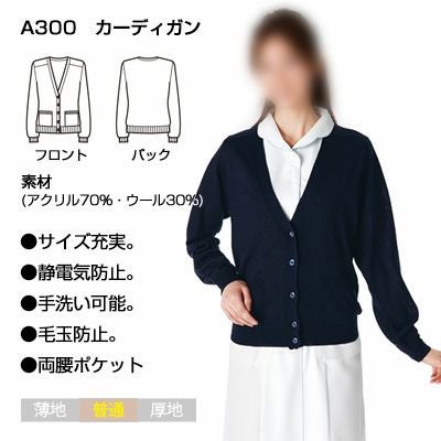 白衣 スクラブ おしゃれ 医療 ナース カーディガン ソワンクレエ A300 ナースカーディガン 7号-17号 医療白衣・介護服