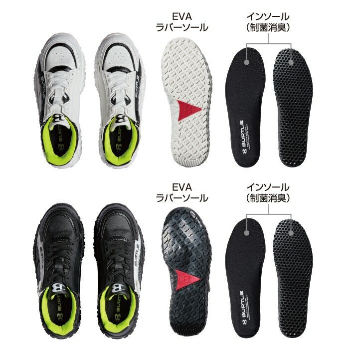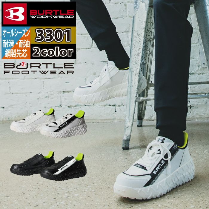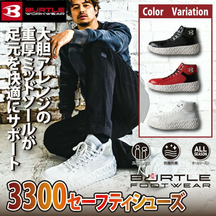 ソール高めのカジュアルデザインシューズ バートル BURTLE 作業着 安全靴 3300 セーフティシューズ XS-XL 作業服 おしゃれ ハイカット 鋼製先芯