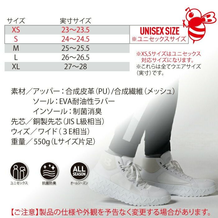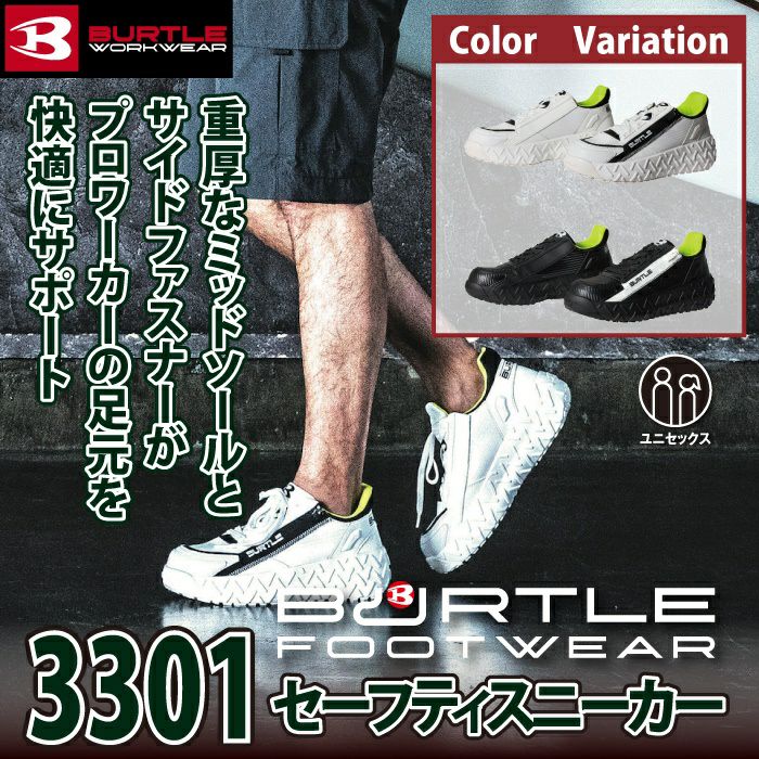 ユニセックス ハイカット バートル BURTLE 安全靴 2024秋冬新作 3301 セーフティスニーカー XS-XL 作業服 おしゃれ ハイカット 耐滑 耐油
