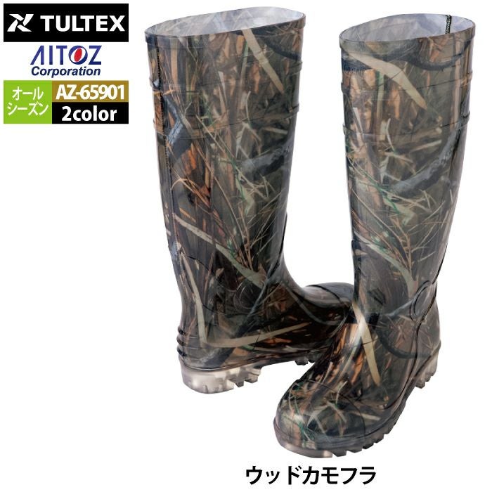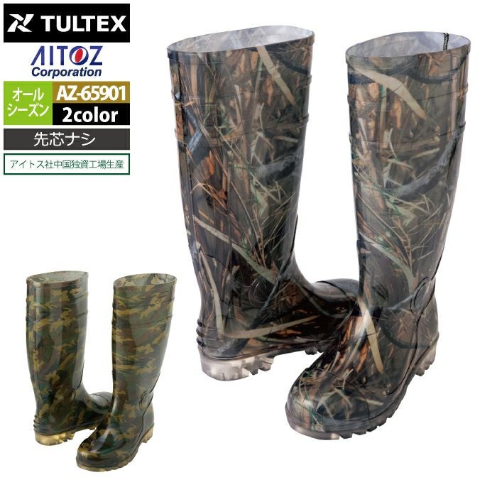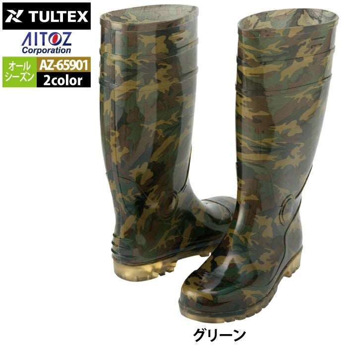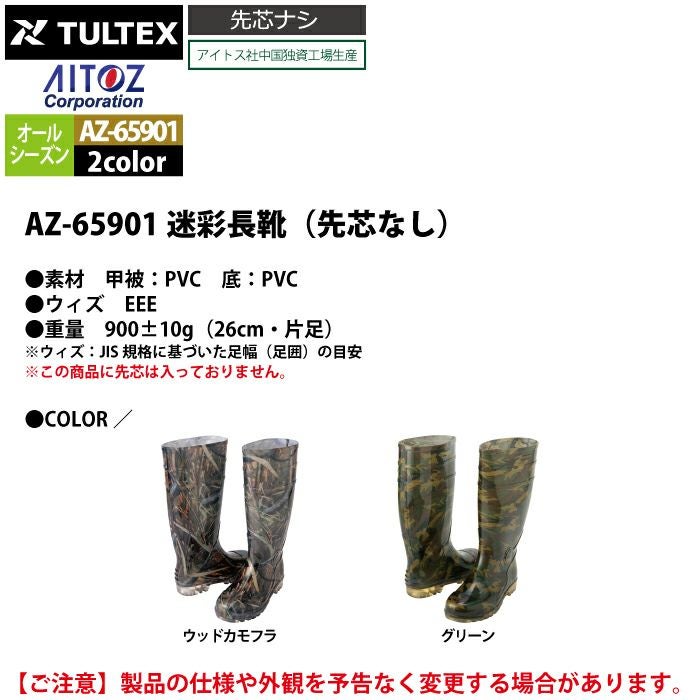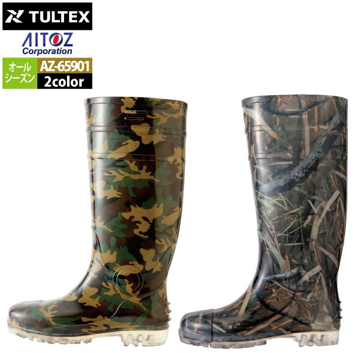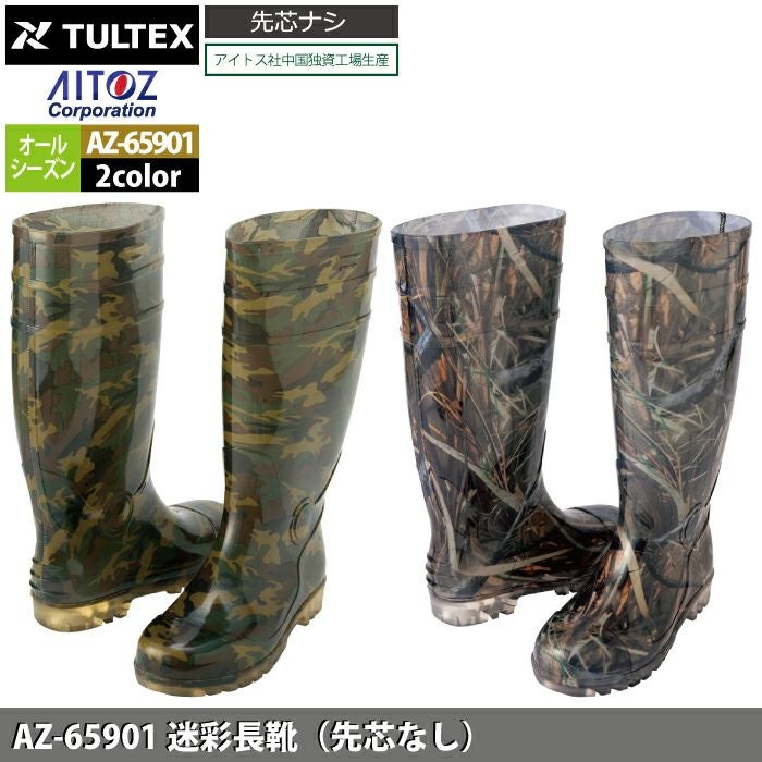 アイトス Aitoz 作業服 作業着 安全靴 安全靴 オールシーズン アイトス Aitoz AZ-65901 迷彩長靴(先芯なし) 24-29