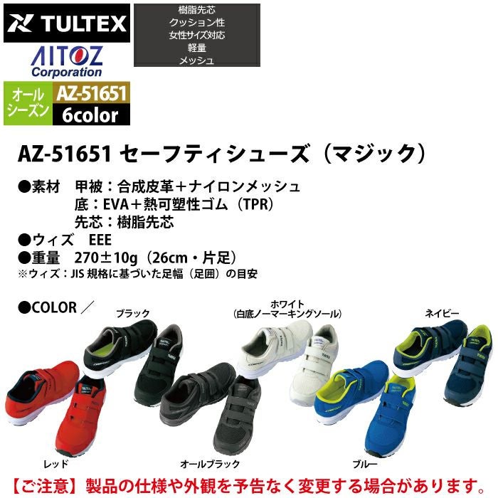 アイトス Aitoz 作業服 作業着 安全靴 安全靴 オールシーズン アイトス Aitoz AZ-51651 タルテックスセーフティシューズ マジック 22.5-28