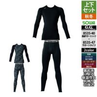 桑和 SOWA 作業服 上下セット 8535-40 長袖サポートシャツS-3L と 8535-47 サポートタイツ S-3L 作業着 作業ズボン 秋冬用 インナー