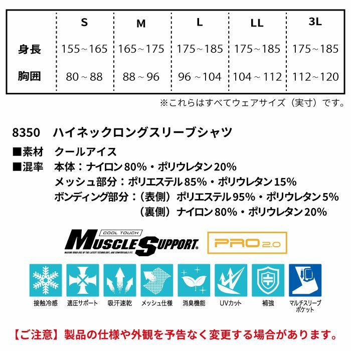 藤和 TSDESIGN 作業服 作業着 作業ズボン 藤和 TSDESIGN 作業服 8350 ハイネックロングスリーブシャツ 3L インナー 春夏用