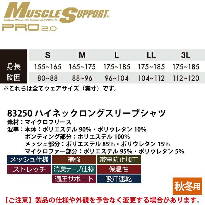 藤和 TSDESIGN 作業服 作業着 作業ズボン 藤和 TSDESIGN 作業服 83250 ハイネックロングスリーブ S-LL インナー 秋冬用