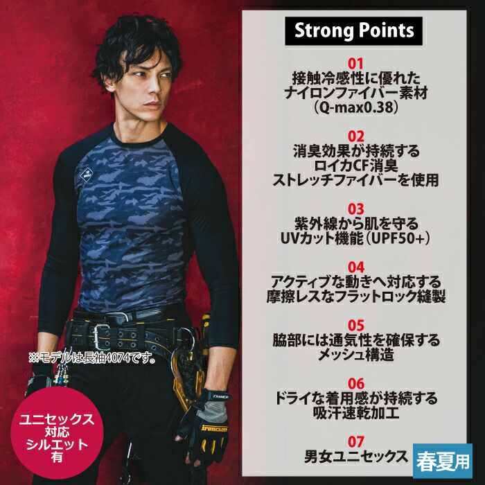 クールコンプレッションニットウェア バートル BURTLE 作業着 インナー 4075 半袖アイス消臭フィッテッド シャツ S-XXL 春夏 作業服 おしゃれ 冷感 ドライ デオドランド UV 夏用