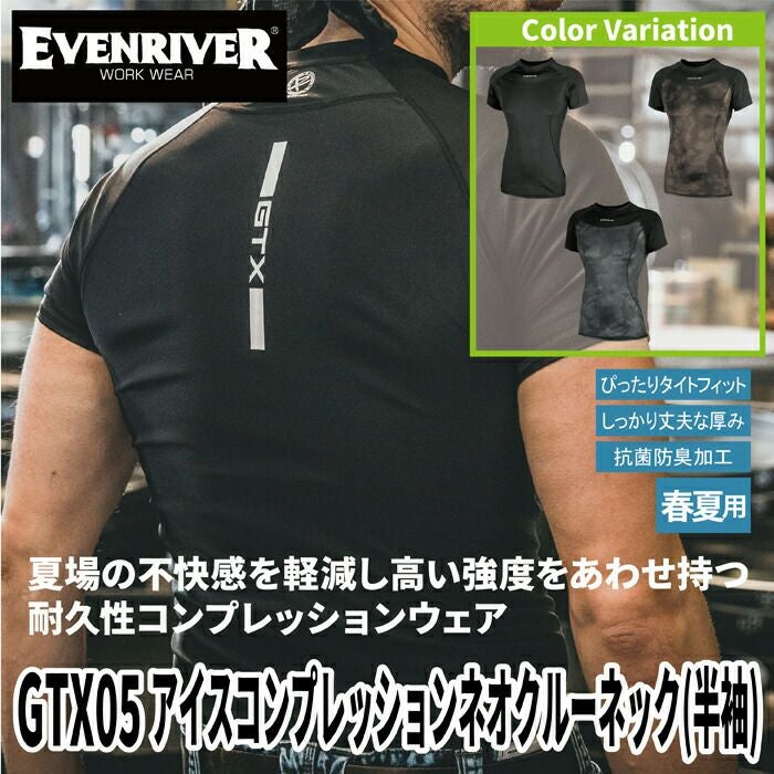 イーブンリバー 作業服 作業着 作業ズボン イーブンリバー EVENRIVER 作業服 インナー GTX05 アイスコンプレッションネオクルーネック(半袖) M-3L 春夏 作業着 おしゃれ