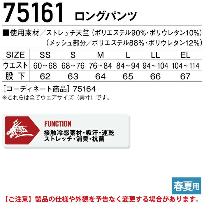 自重堂 Z-DRAGON 作業服 作業着 作業ズボン 自重堂 Z-DRAGON 作業服 インナー 75161 ロングパンツ EL 春夏用 作業着