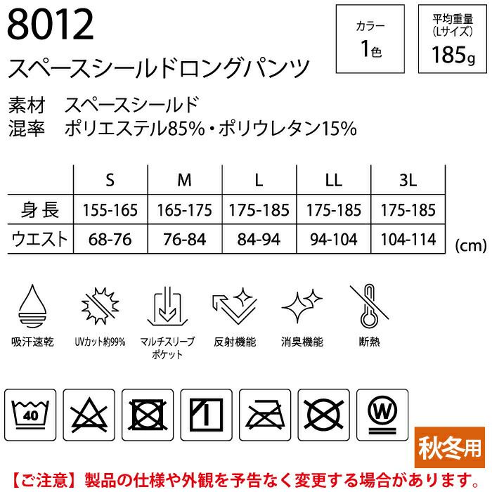 藤和 TSDESIGN 作業服 作業着 作業ズボン 藤和 TSDESIGN 作業服 8012 スペースシールドロングパンツ 3L インナー 秋冬用