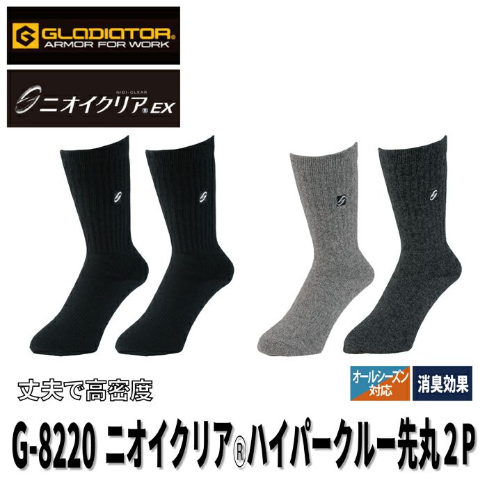 コーコス 作業服 作業着 作業ズボン インナー オールシーズン コーコス G-8220 ニオイクリアハイパークルー先丸2P L-LL