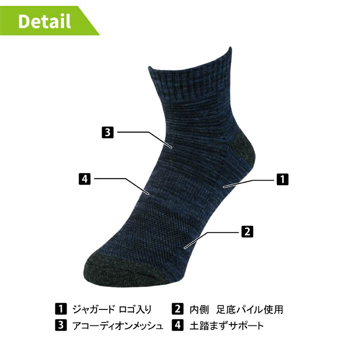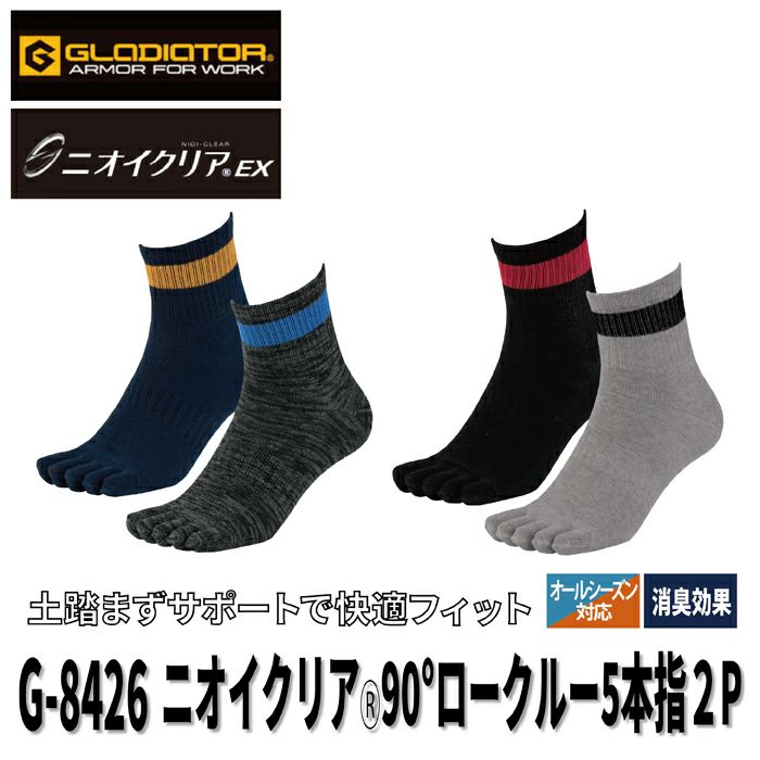 コーコス 作業服 作業着 作業ズボン インナー オールシーズン コーコス G-8426 ニオイクリア90°ロークルー5本指2P L