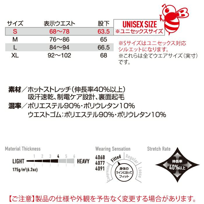 ユニセックス ストレッチ 保温 バートル BURTLE 作業着 インナー 2024秋冬新作 4077 ホットフィッテッドパンツ S-XL 作業服 おしゃれ ドライ 消臭 保温