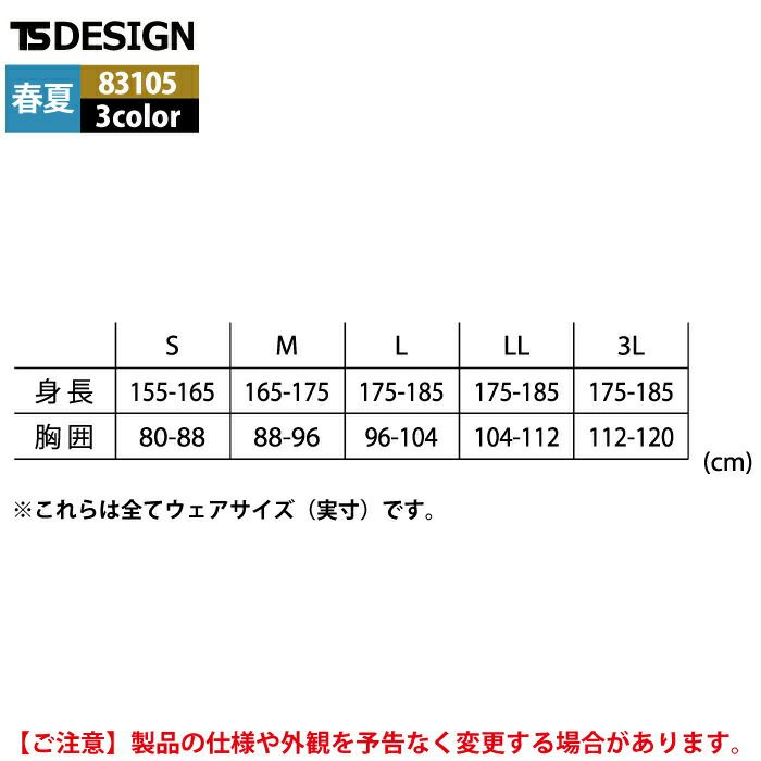 藤和 TSDESIGN 作業服 作業着 作業ズボン 藤和 TSDESIGN 作業服 83105 ロングスリーブシャツ 3L インナー 春夏用