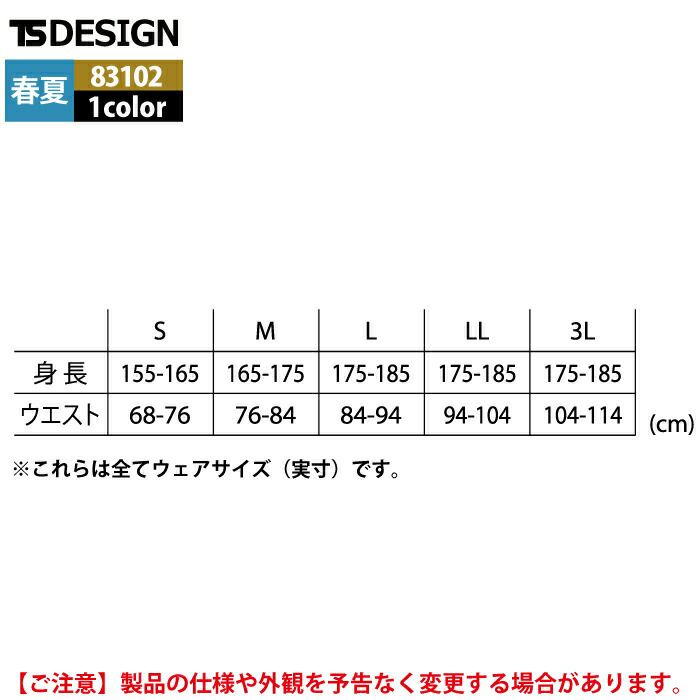 藤和 TSDESIGN 作業服 作業着 作業ズボン 藤和 TSDESIGN 作業服 83102 ロングパンツ S-LL インナー 春夏用