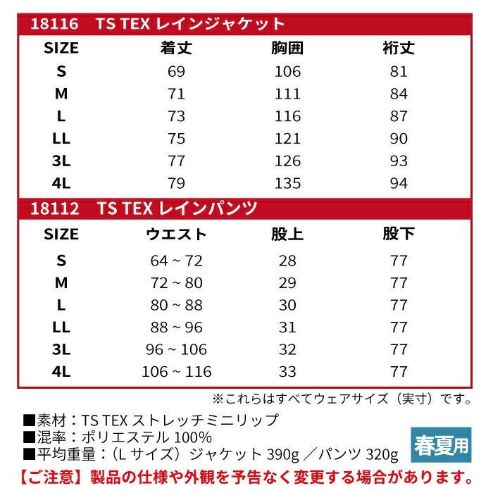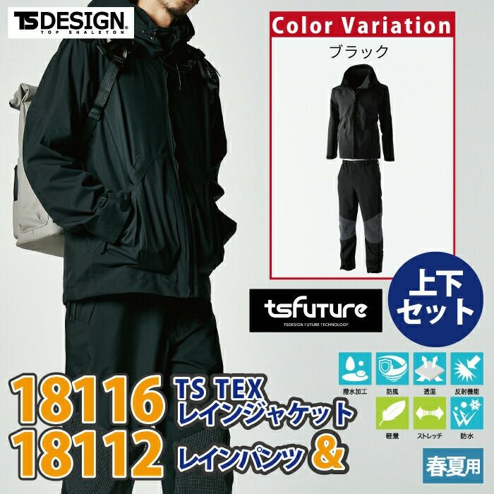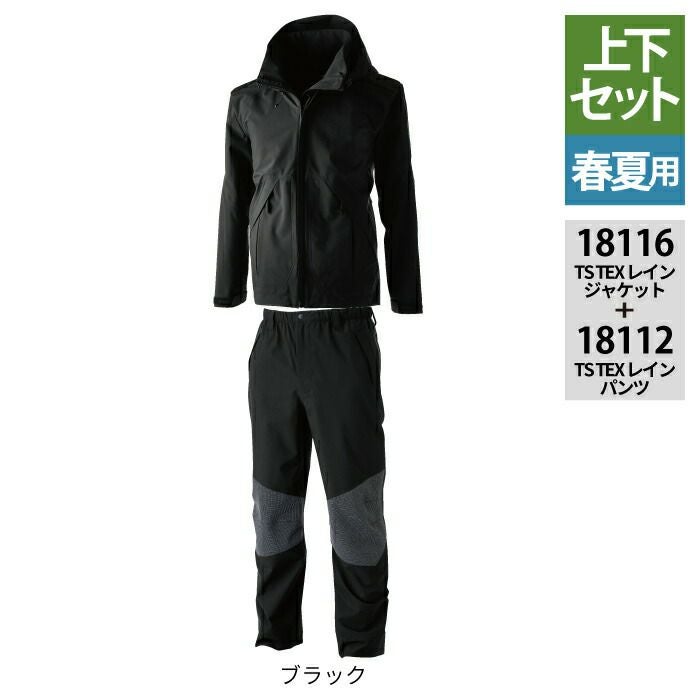 藤和 TSDESIGN 作業服 上下セット 18116 レインジャケット と 18112 レインパンツ S-LL レインウエア オールシーズン かっこいい おしゃれ 作業着 ズボン