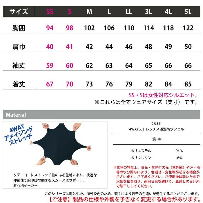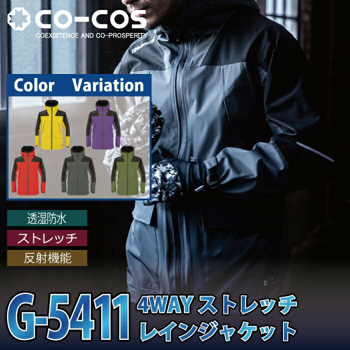 コーコス 作業服 作業着 作業ズボン レインウエア 秋冬用 コーコス G-5411 4WAYストレッチレインジャケット SS-LL
