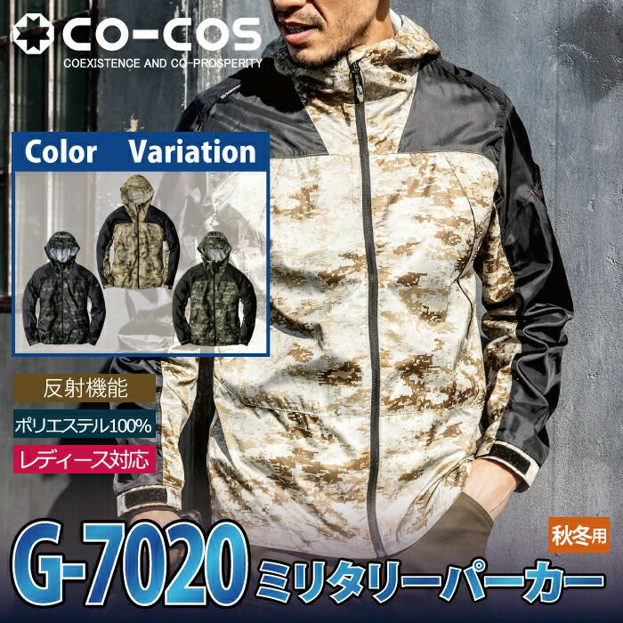 コーコス 作業服 作業着 作業ズボン レインウエア 秋冬用 コーコス G-7020 ミリタリーパーカー S-LL