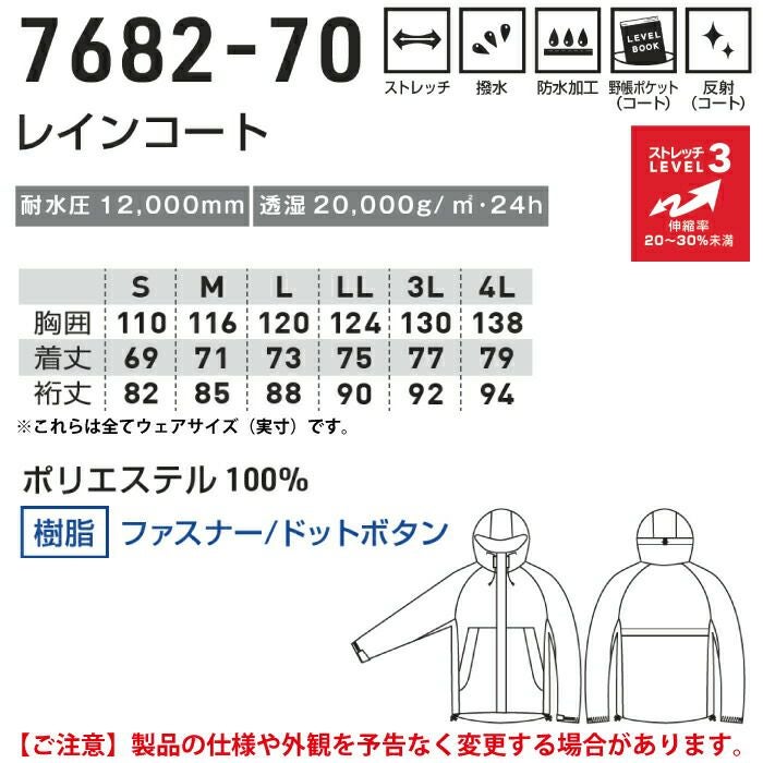 桑和 SOWA 作業服 作業着 作業ズボン レインウェア 秋冬用 桑和 SOWA 7682-70 レインコート 4L